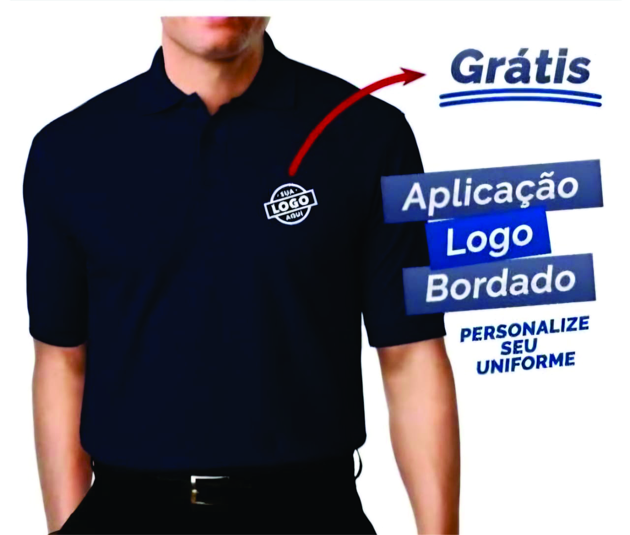Camisa polo no piquet premium 50% algodão/50% poliester com 1 logo bordado grátis aplicado.Condição válida para pedidos acima de 20 peças.